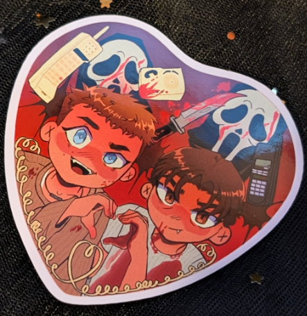 2.2" heart shaped pin with a heart holo film! 3" Sticker option as well!